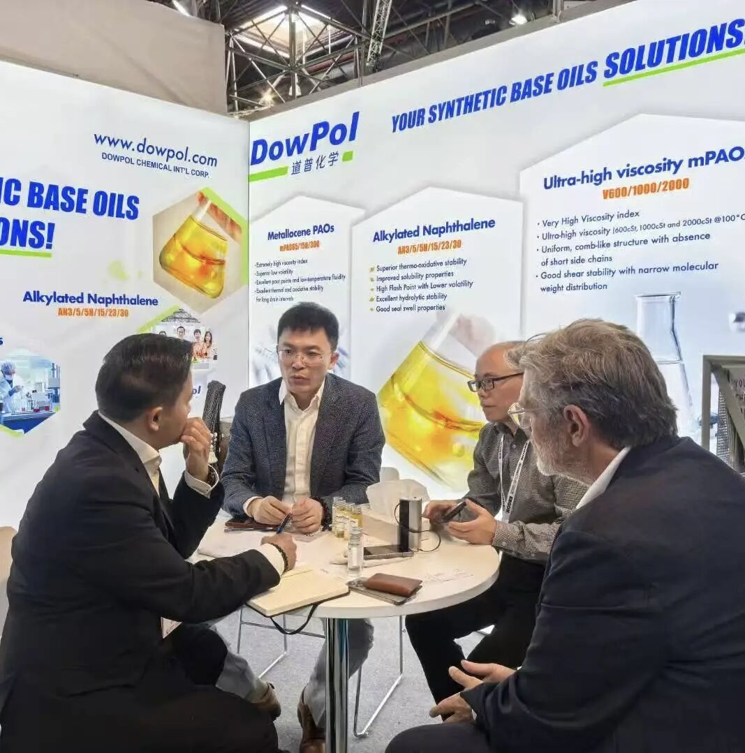 2025年9月16-18日,德国杜塞尔多夫——欧洲最大的润滑油专业展览会“2025德国杜塞尔多夫国际润滑油及技术展览会(Lubricant Expo Europe)”盛大举办。上海道普化学有限公司(以下简称“道普化学”)作为中国合成基础油领域的领军企业,带来了创新的超高粘度茂金属聚α-烯烃(mPAO)产品系列,为全球润滑油行业应对未来挑战提供了全新的解决方案,向世界展示了公司在高端合成基础油领域的领先地位和技术实力。