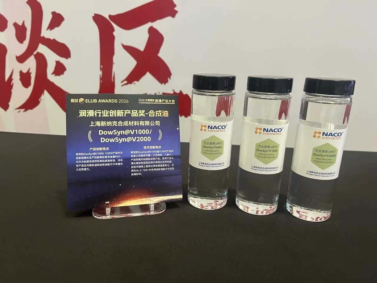 2026年03月25日易贸“ELUB-AWARDS 2026润滑行业评选”颁奖晚宴璀璨启幕,上海新纳克一举斩获“润滑行业优秀供应商奖”,旗下核心产品超高粘度茂金属聚α烯烃DowSyn V1000/2000同步摘得”润滑行业创新产品奖”。